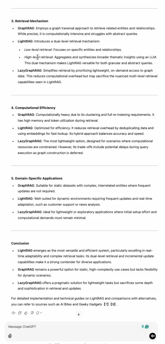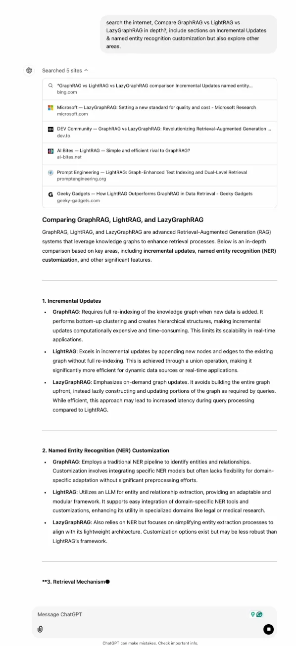The subject: GraphRAG can address some limitations of RAG, improving accuracy, contextual understanding, and relevance in response generation, but it currently faces scalability and maintainability challenges. Understanding whether it is close to being production-ready and the requirements to maintain it long-term is useful. In this case, the model correctly highlighted some of the constraints I wanted it to compare, such as Incremental Updates and customization of the Named Entity Recognition module.