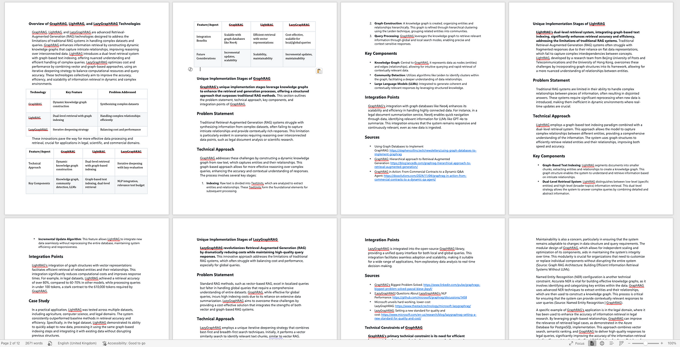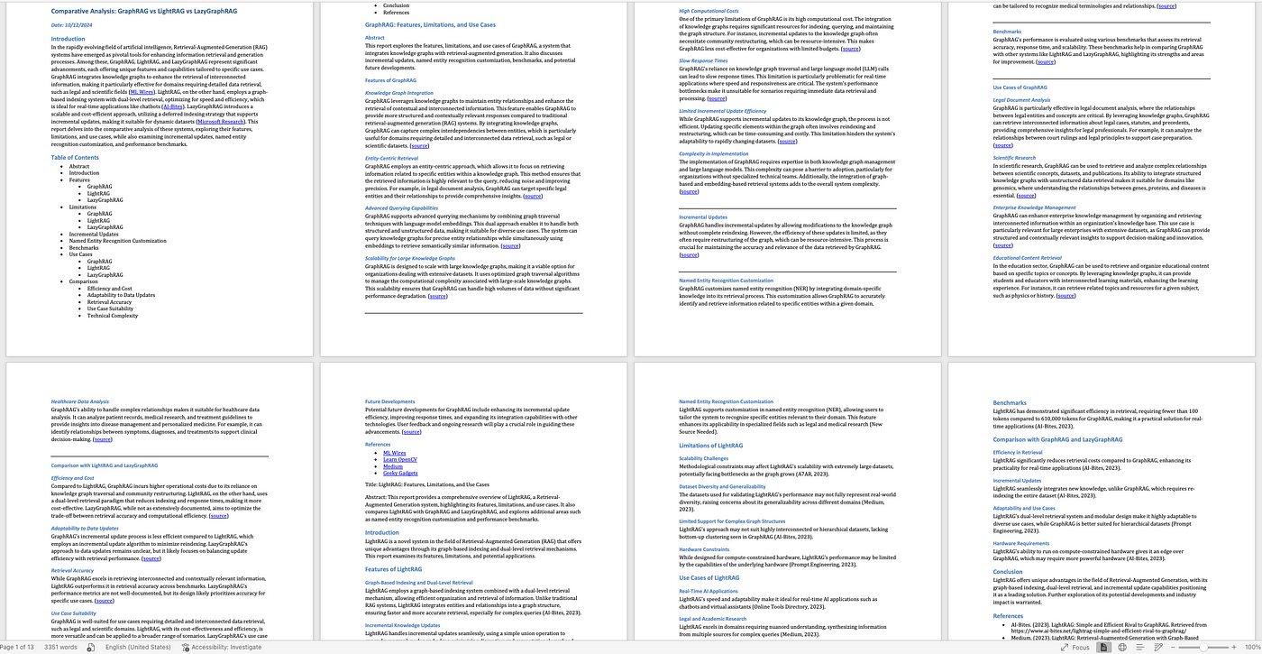 - Generates a comprehensive report with an introduction, table of contents, and body