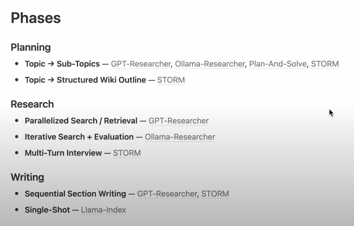 - It doesn’t appear to do tracking of previously written content from each section like GPT Researcher.